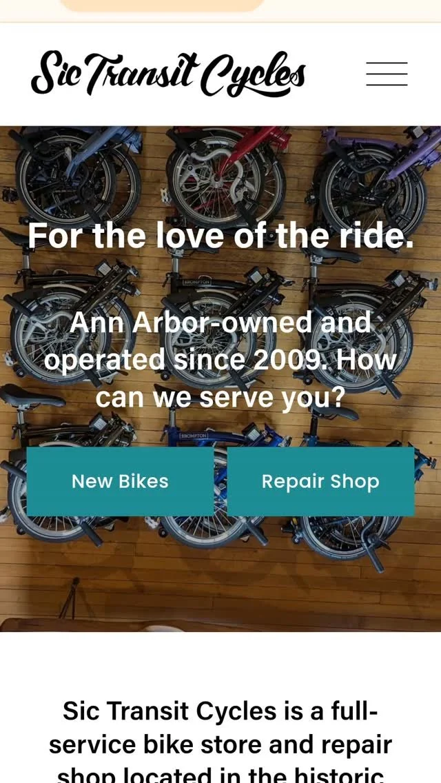 Sic Transit Cycles is a full-service bike store and repair shop located in the historic Lowertown section of Ann Arbor, Michigan. We are proud to have the city's premier bicycle service center, a showroom full of new bicycles and accessories, and a bicycle fitting studio run by our partner business, Fitmi.